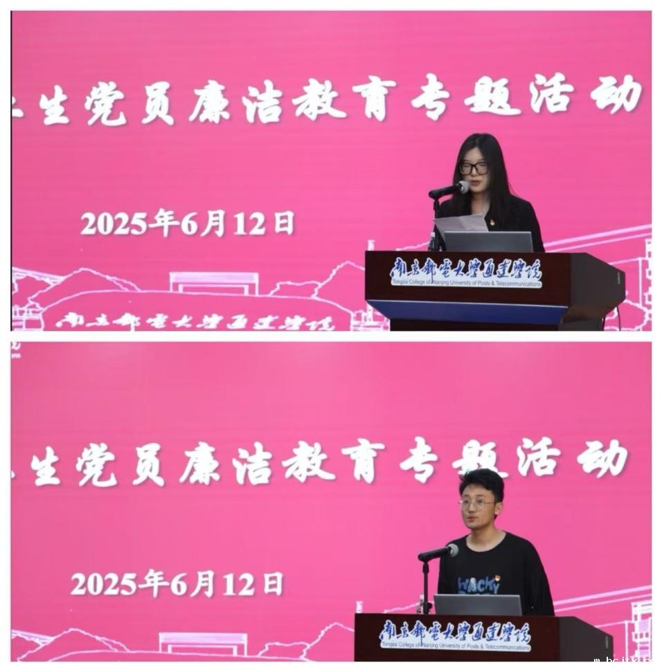 电子工程学院、计算机工程学院的两位同学作为毕业生党员代表发言。他们简要回顾了自己在校期间参与的一些主题党日活动和廉洁教育活动,并结合学习、生活分享了各自对廉洁的理解与感悟,强调了践行廉洁理念、勇担时代使命的重要性,表明了对廉洁从业的坚定态度和对自身责任的清晰认知,展现出共产党员应有的政治本色和担当精神。