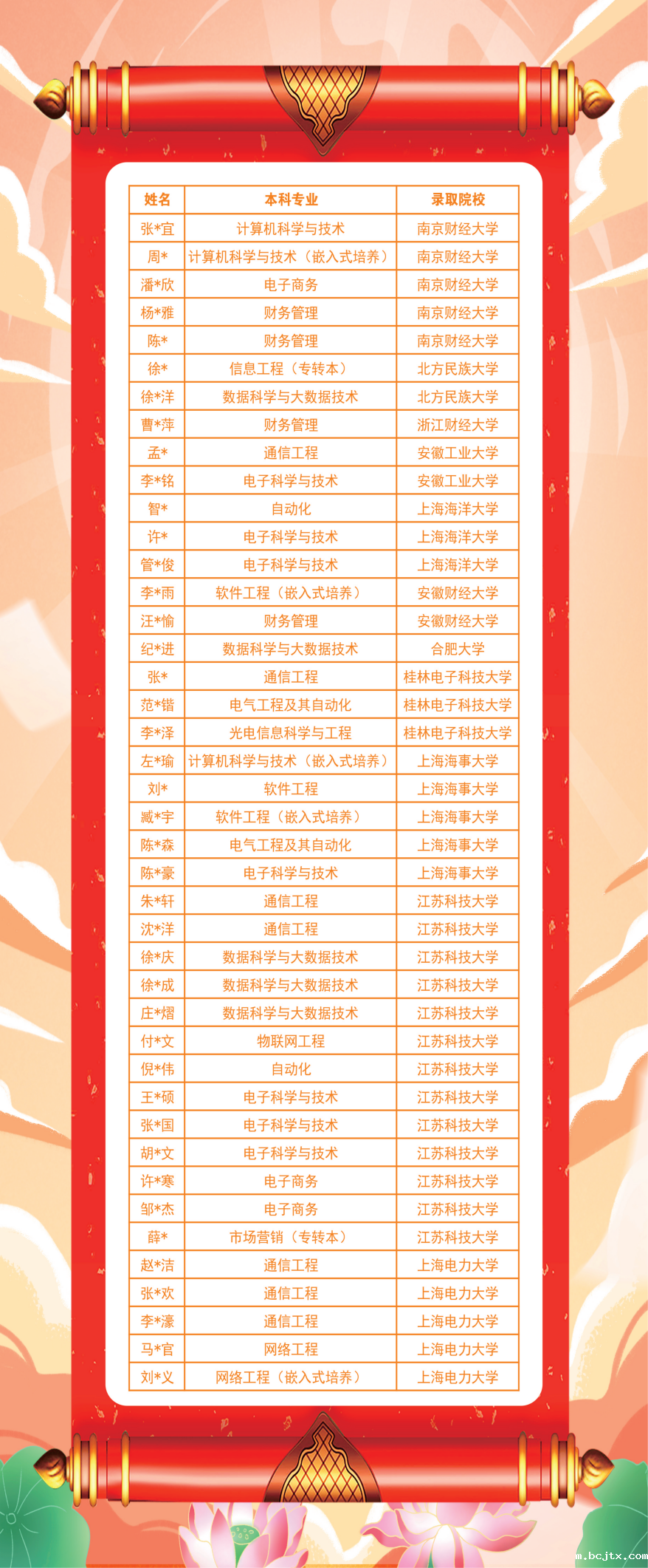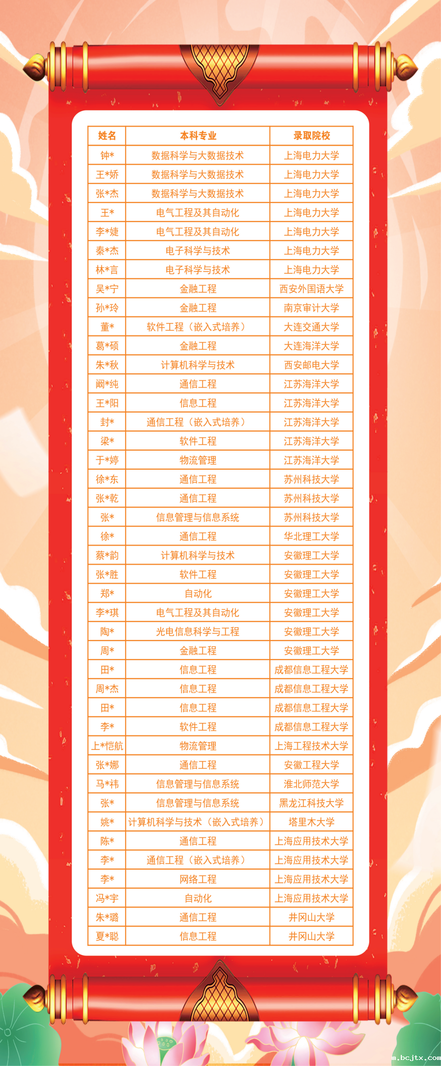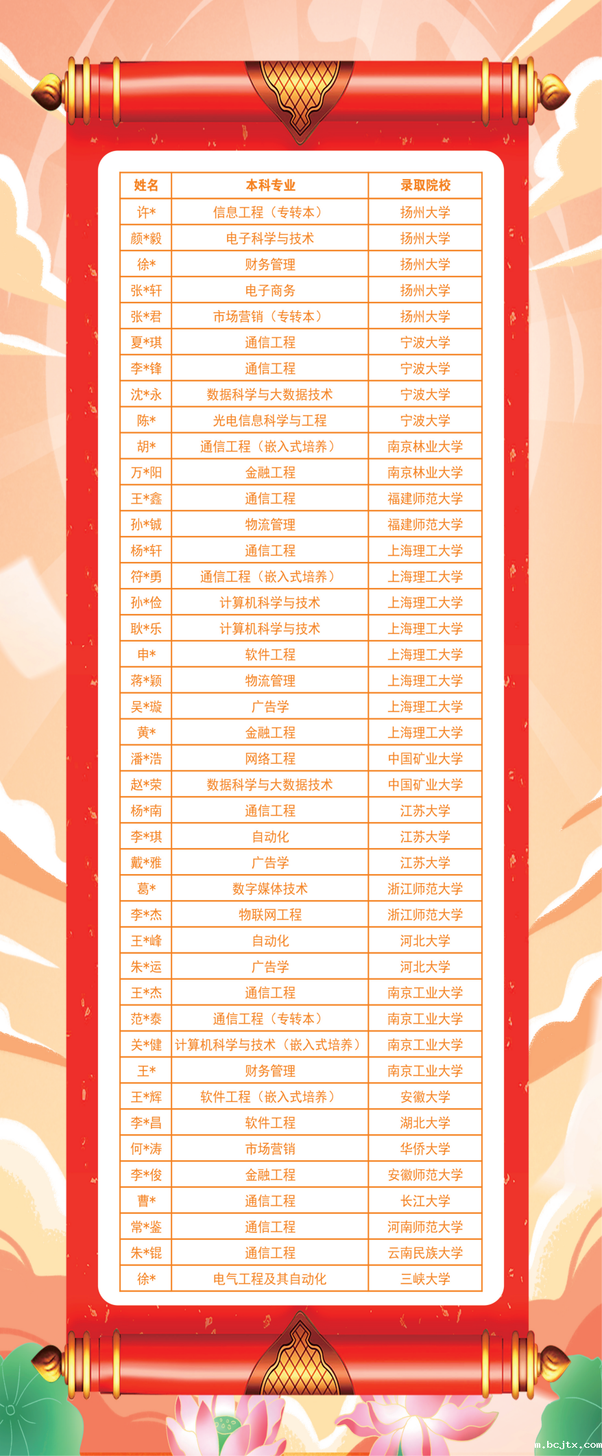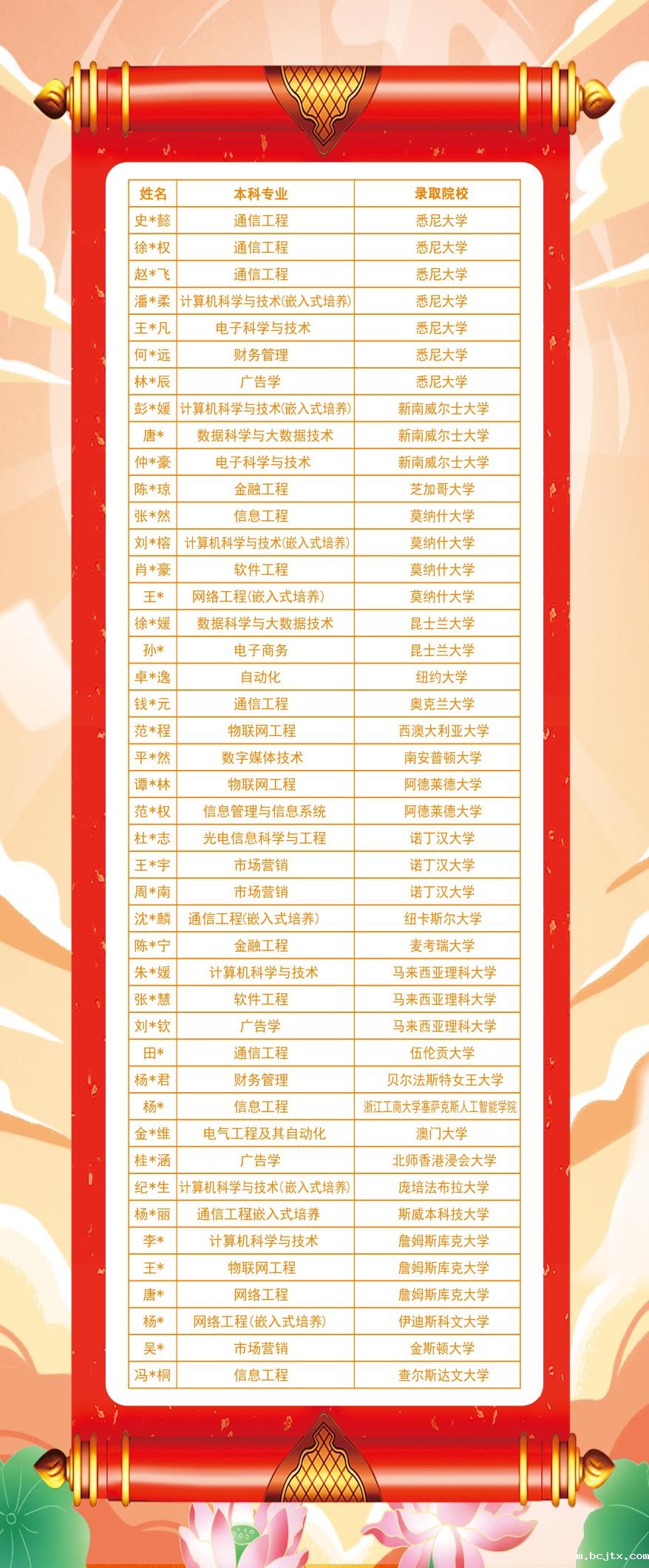 我院taptap体育最新备用网站质量高,近几年考研升学率在省内同类院校名列前茅。2025年毕业生升学率近15%,其中近20%的学生被南京理工大学、南京邮电大学、中国矿业大学等“双一流”高校录取。截止6月18日,有56人境外升学成功,其中38%被QS排行前50的悉尼大学、芝加哥大学、纽约大学、新南威尔士大学等国外知名高校录取。学生就业主要分布在长三角地区及长江经济带,近半数毕业生从事新一代信息技术和软件(含物联网和云计算、电气控制与自动化、智能电网)行业。